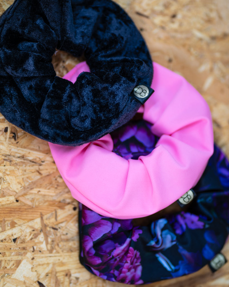 Kaunis Chichilla paketti sisältää kolme muhkeaa scrunchieta: Bloom, Adenium Pink ja Black Velvet donitsin. Scrunchiet ovat valmistettu Lahdessa. Yksinkertaisena scrunchie koristaa kauniisti nutturaa, mutta sitä voi käyttää myös kaksin- ja kolminkerroin.